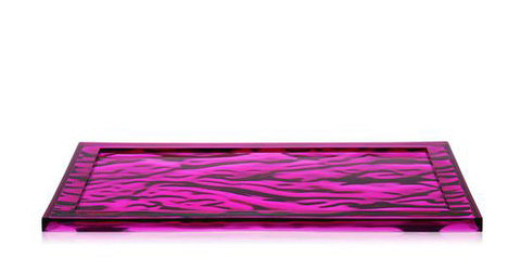 The Dune tray is made from hard polycarbonate. The sculpted underside produces a wavy distorted image of the table below. In two sizes and various colors. Beautiful, and practical too. Designed by Mario Bellini.