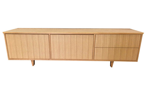 Design by Steve Miller for designhouse. Made in BC. The Focus is an entertainment cabinet with many customizable options. Each section can be specified to have drawers, self storing door or can be left open. Glass or wooden shelves may be specified if required. All doors and drawers have "push to open" hardware.