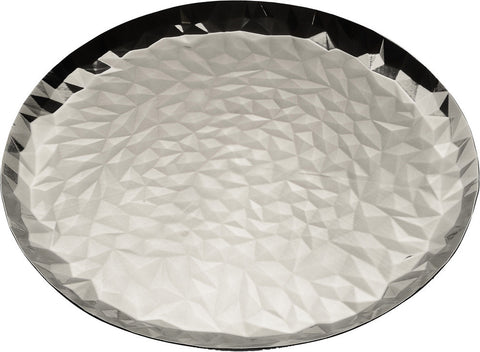 The Joy n.3 tray is one of two latest additions to the Joy series by Claudia Raimondo. The shape and decoration of the sheet steel is created through a sophisticated and contemporary molding technique. The irregular texture creates a fascinating play of light that enhances the object.