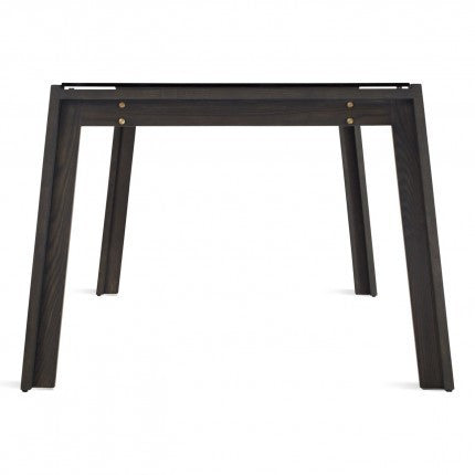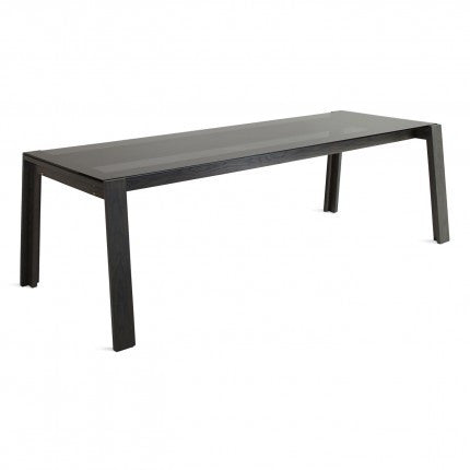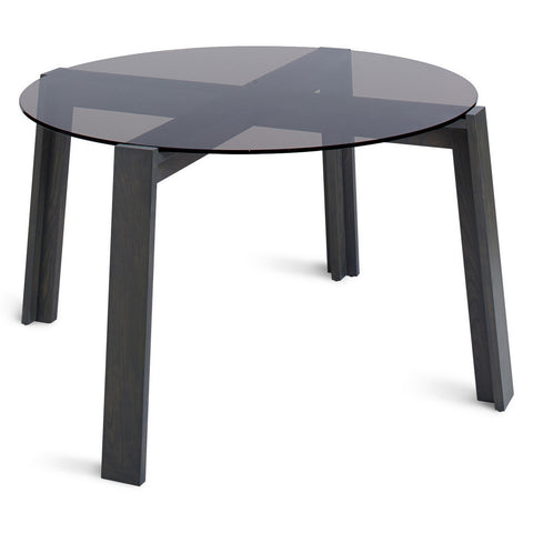 Smoked glass floats on a solid smoked ash wood frame. Brass hardware details add just the right amount of flair. Available in round, 72" or 95" rectangle sizes.