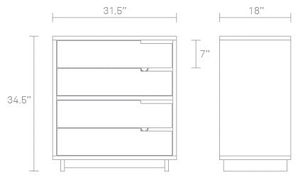 The Modulicious 4 chest is part of an extensive line of furniture by Bludot. Available in a maple, walnut and espresso oak.
