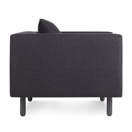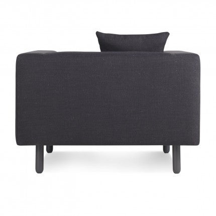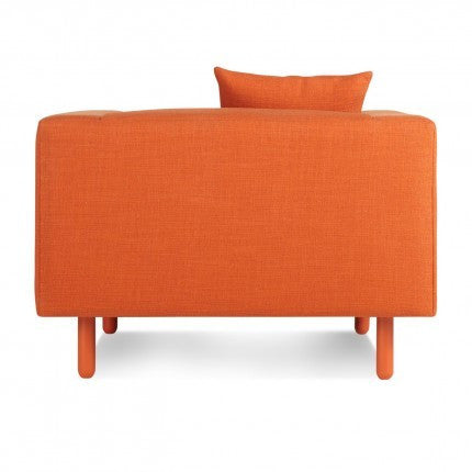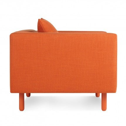 Streamline simplicity. One cushion, one color, one throw pillow. Solid wood legs are painted to match the upholstery. Available in two monochromatic finishes. Packwood Grey and Packwood Orange with legs painted to match.