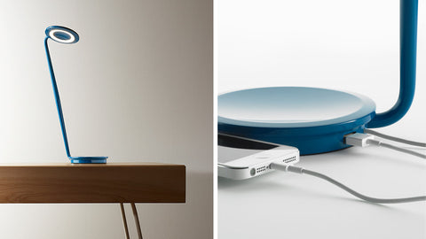 Pixo is a compact and energy-efficient LED task lamp that is perfect for desks, end tables or nightstands. Designed for movement, Pixo’s rotating arm and head allow you to direct its warm and bright lightsource where you need it most with a 360º head and stem rotation and 180º stem tilt. For added convenience, the elegant form factor features full-range dimming via its easy to use optical switch. Features convenient USB charging port in base.