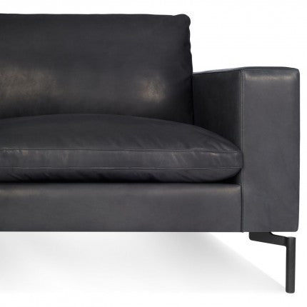 The New Standard is simplicity at its best with a twist. Wide arms and inviting loose cushions all come together with tuned proportions and show stopping legs. Now Available in durable and sumptuous leather upholstery options. Choose from dark brown leather and granite leather with black legs.