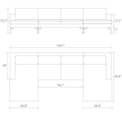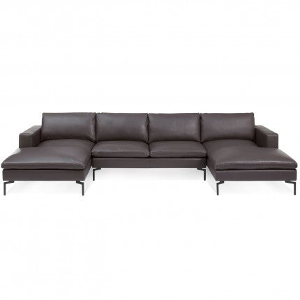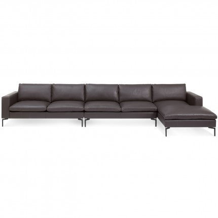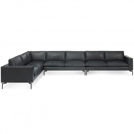 The New Standard is simplicity at its best with a twist. Wide arms and inviting loose cushions all come together with tuned proportions and show stopping legs. Now Available in durable and sumptuous leather upholstery options in dark brown or granite. Choose from a variety of confirgurations to suit your needs.