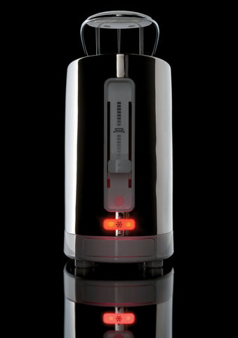 Kitchen electric appliances get the minimalist, modernist and elegant approach started by Stefano Giovannoni with his other electric appliance designs for Alessi. Toaster with bun warmer in 18/10 stainless steel mirror polished and white.